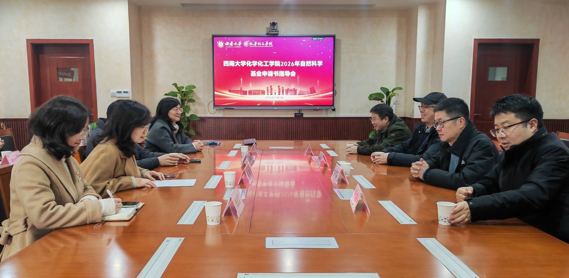 为进一步提升学院教师国家自然科学基金项目申报质量,提高基金申报成功率,2026年1月5日,学院特邀南开大学化学学院副院长袁明鉴教授、南开大学化学学院副院长谢微教授、南开大学材料学院徐加良教授、天津大学材料学院邓云峰教授四位知名专家,在学院238会议室举办了第二场2026年度国基金项目申请专题指导会。学院十余位拟申报的教师参加了本次指导会。