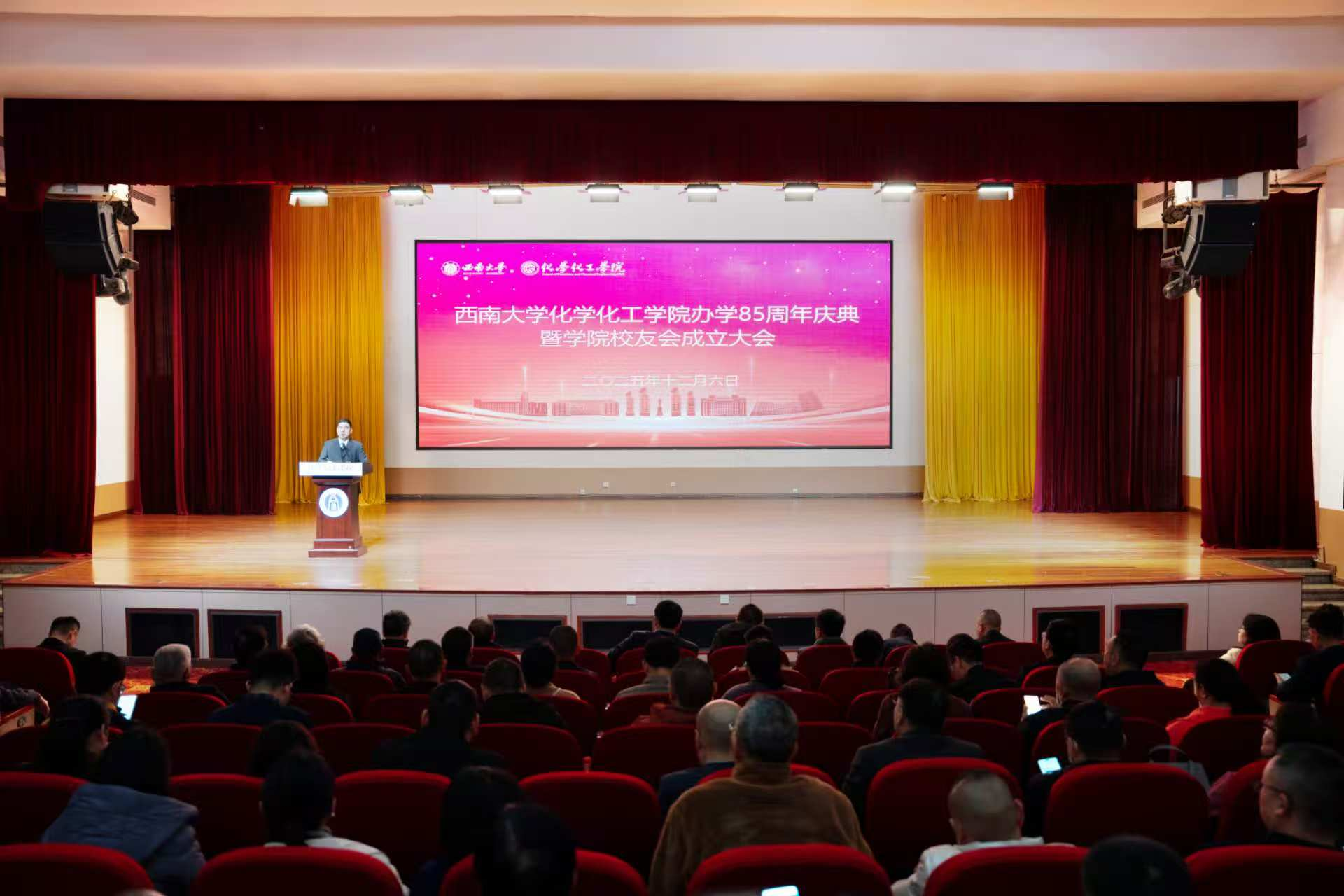 薪火承文脉,聚力启新章。为传承学院精神内核、凝聚各界校友力量、共促学院高质量发展,12月6日上午9时,西南大学化学化工学院办学85周年庆典暨学院校友会成立大会在西南大学音乐厅隆重举行。西南大学党委常委、副校长邱江,西南大学原副校长周光明等领导,来自全国各地的280余名校友代表与200余名在校师生代表齐聚一堂,共忆峥嵘岁月,共话发展蓝图。大会由化学化工学院党委书记周翱主持。